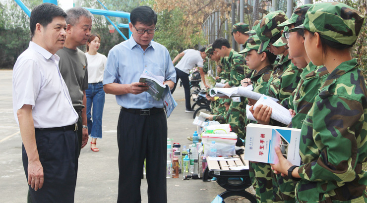 本网讯 9月26日,校党委书记曾桓松、校党委副书记叶峥嵘在保卫处、武装部相关负责人的陪同下,来到新生军训场地看望慰问参训师生和教官,了解新生的军训情况。