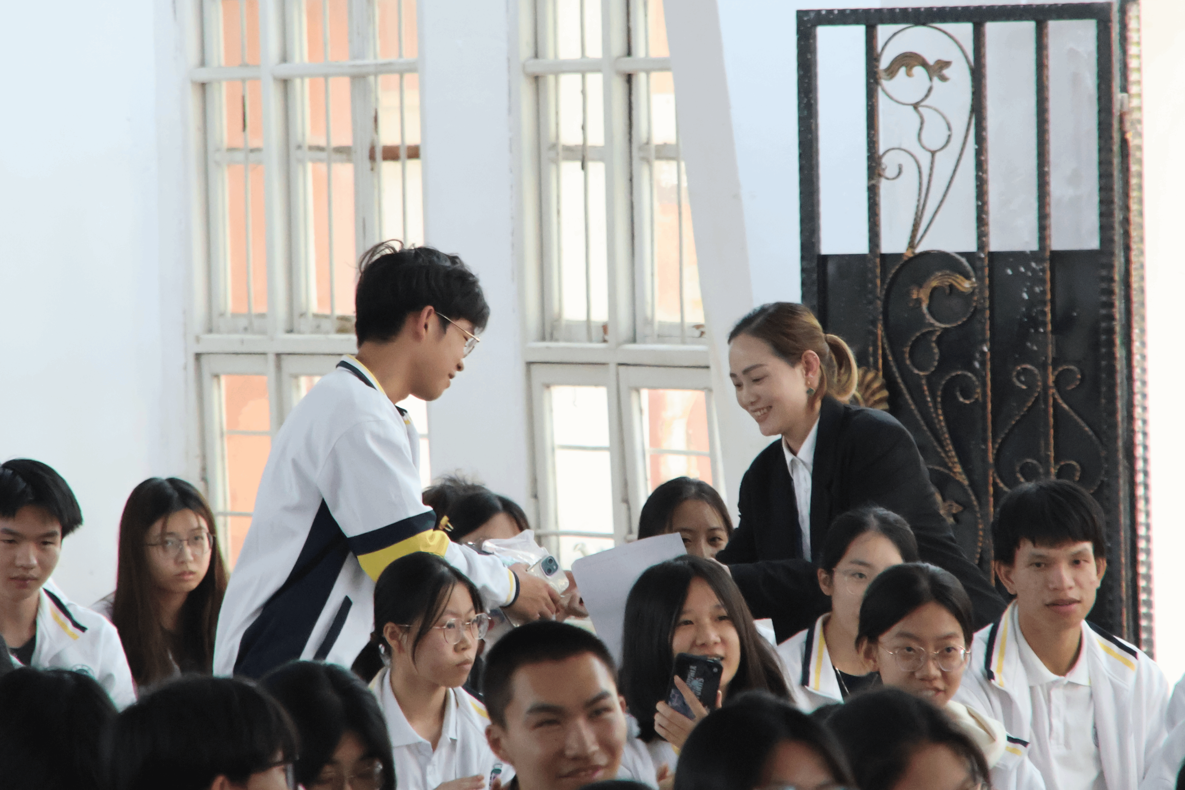 宣讲现场,陈哲玲结合实际案例,向学生解析了新型的洗钱手法以及公民应当如何进行反洗钱。李施慧结合日常的反诈工作,向学生们介绍了现在网络电信诈骗的常见形式和防范方法。互动环节中,学生们积极参与,现场气氛热烈,在活跃的气氛中收获了知识,提高了自我防范和公民正义意识。