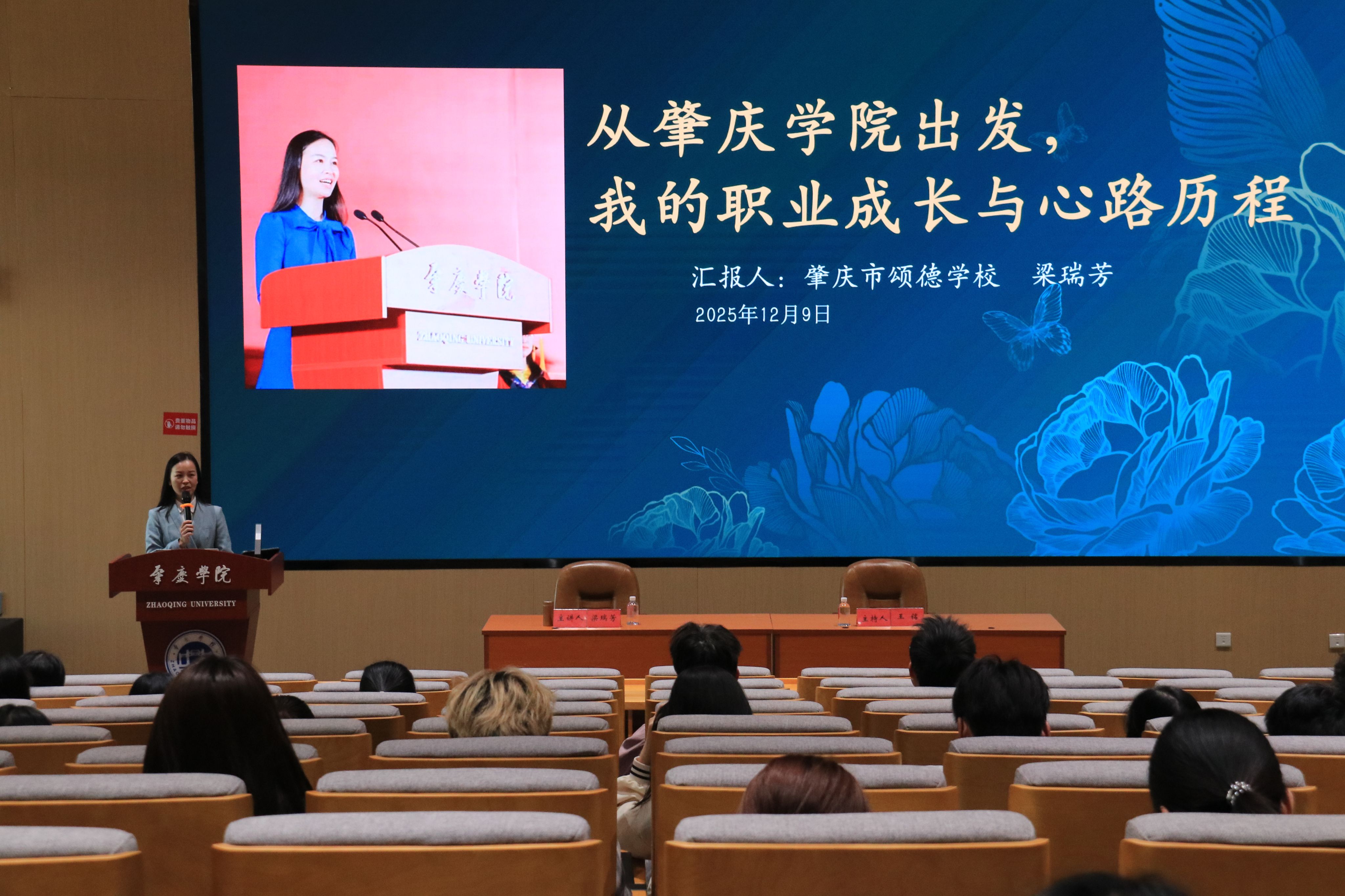 本网讯 12月9日,我校特邀“全国青年岗位能手”、优秀校友、肇庆市颂德学校校长梁瑞芳,于新校园学术报告厅举办了一场题为“从肇庆学院出发,我的职业成长与心路历程”的讲座。学工部相关领导、老师以及200多名学生参加。