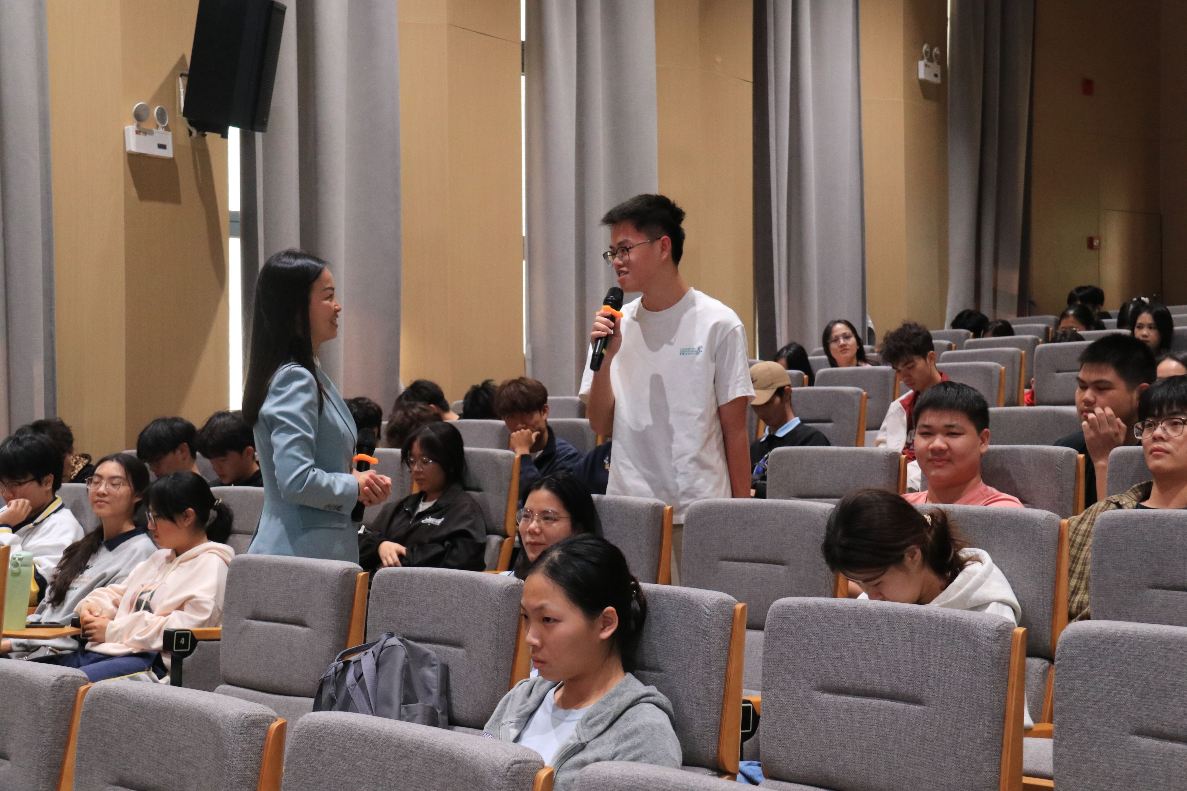 梁瑞芳以“什么是你职业生涯中最宝贵的、别人无法拿走的财富”作为讲座切入点,提出在职业规划道路上应具备“五力”,即深耕力、选择力、规划力、平衡力和影响力。她还分享了如何凭借硬核技能打破路径依赖,在面对诱惑时坚守热爱与初心,怎样设计人生的“双轨实验”,如何在多重角色间自由转换,以及如何在管理岗位上塑造自身价值等内容,向师弟师妹们深入分享了自己的职业成长与心路历程。