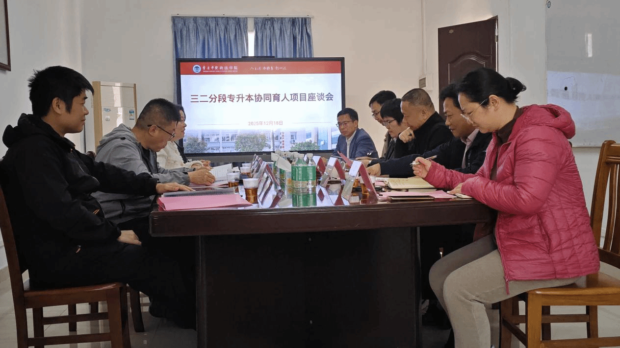 本网讯 12月18日下午,广东司法警官职业学院教务处副处长侯伟一行四人莅临政法学院,就深化三二分段协同育人项目进行工作推进交流。政法学院党委书记张滔华、院长许英以及双方相关人员参加座谈会。