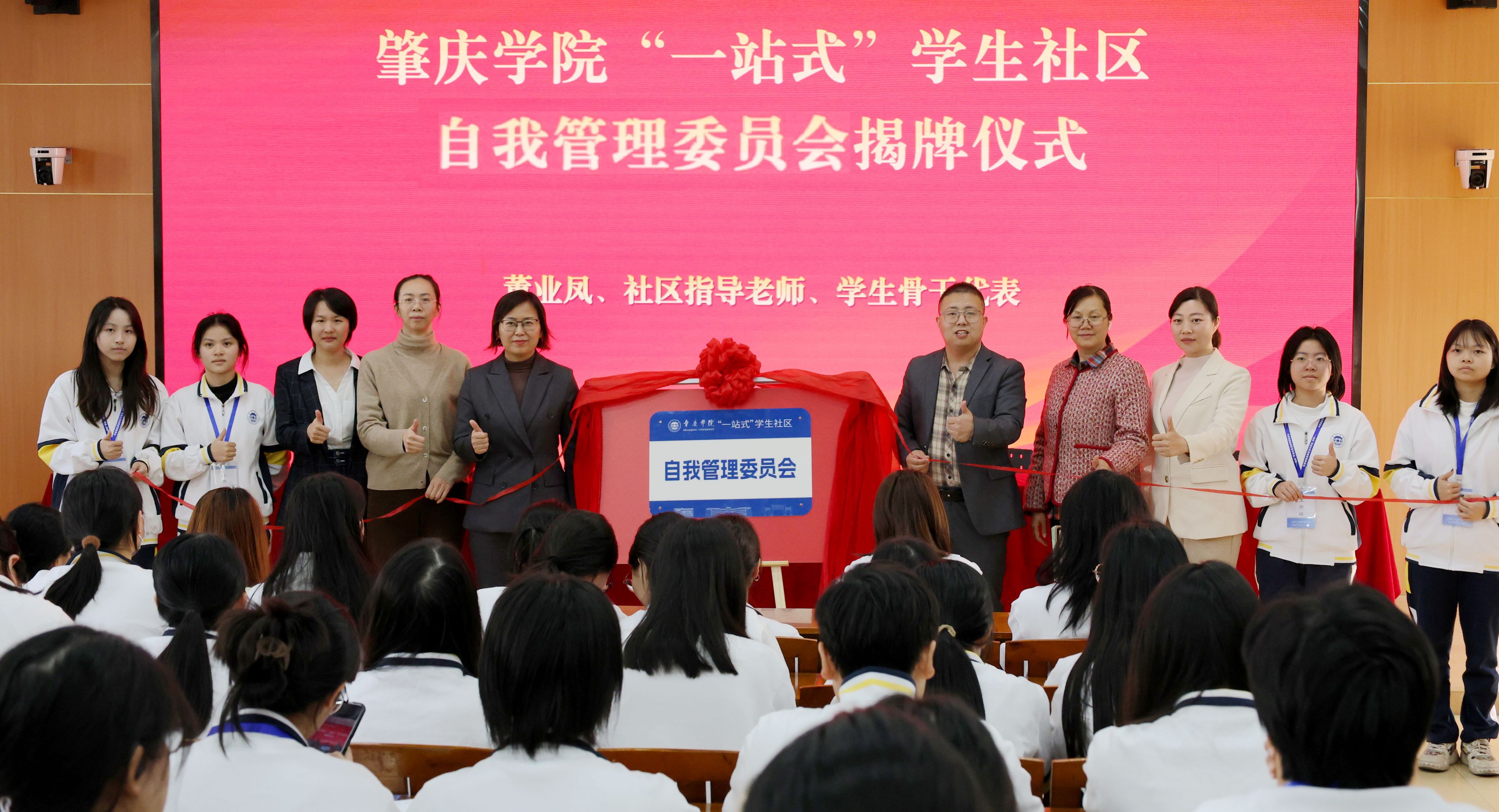 会上,董业凤与师生代表共同为“肇庆学院一站式学生社区自我管理委员会”揭牌。随着红色幕布徐徐落下,现场响起热烈掌声,自管会的工作正式启航。