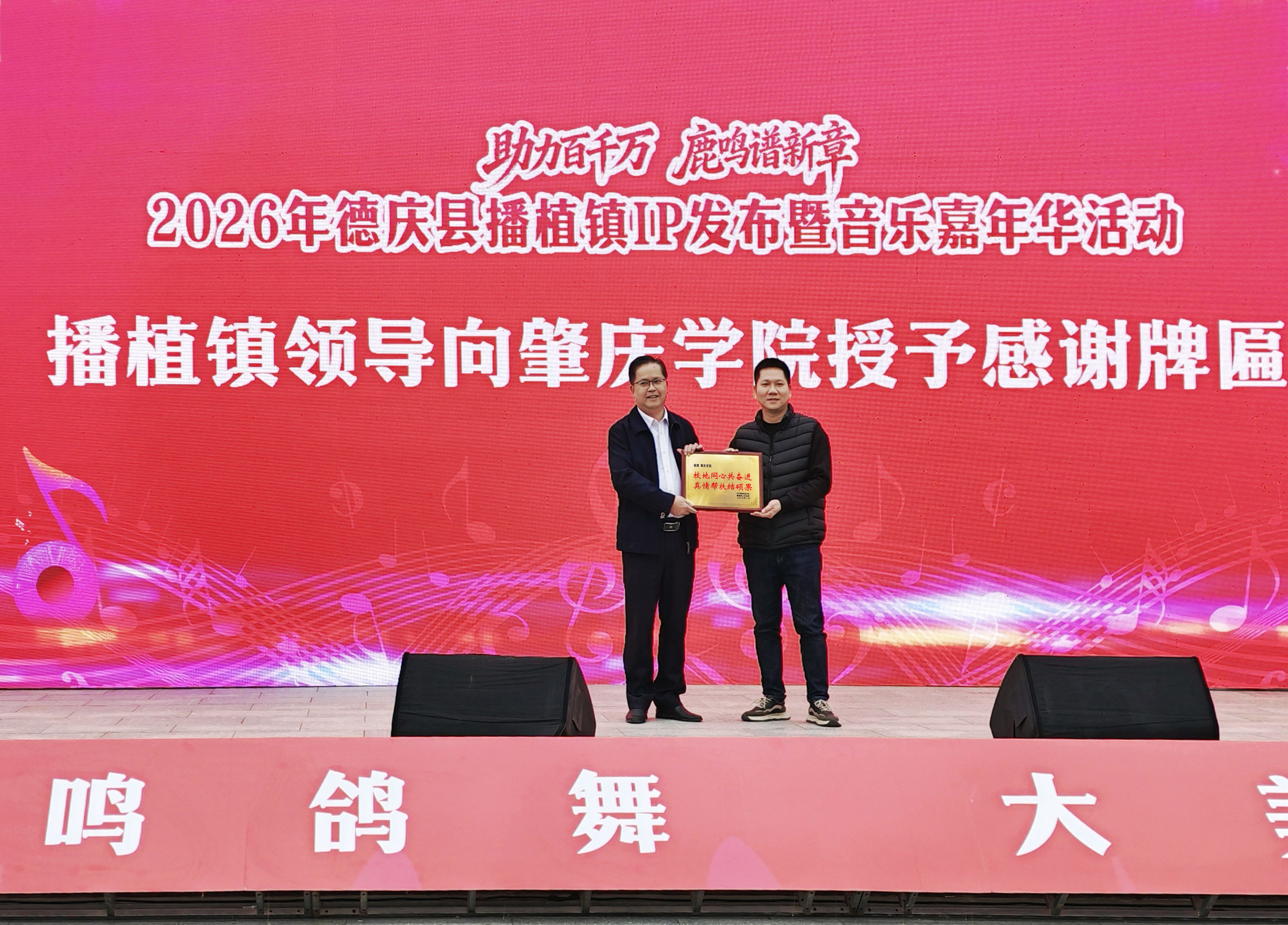 本网讯 近日,为深入贯彻落实“百千万工程”,以设计创意助力乡村振兴,我校与德庆县播植镇在该镇文化广场联合举办“鹿鸣鸣”IP形象发布暨音乐嘉年华活动。肇庆市委政研室,德庆县人大、县政协,学校科学技术部、设计团队等相关负责人参加活动。
