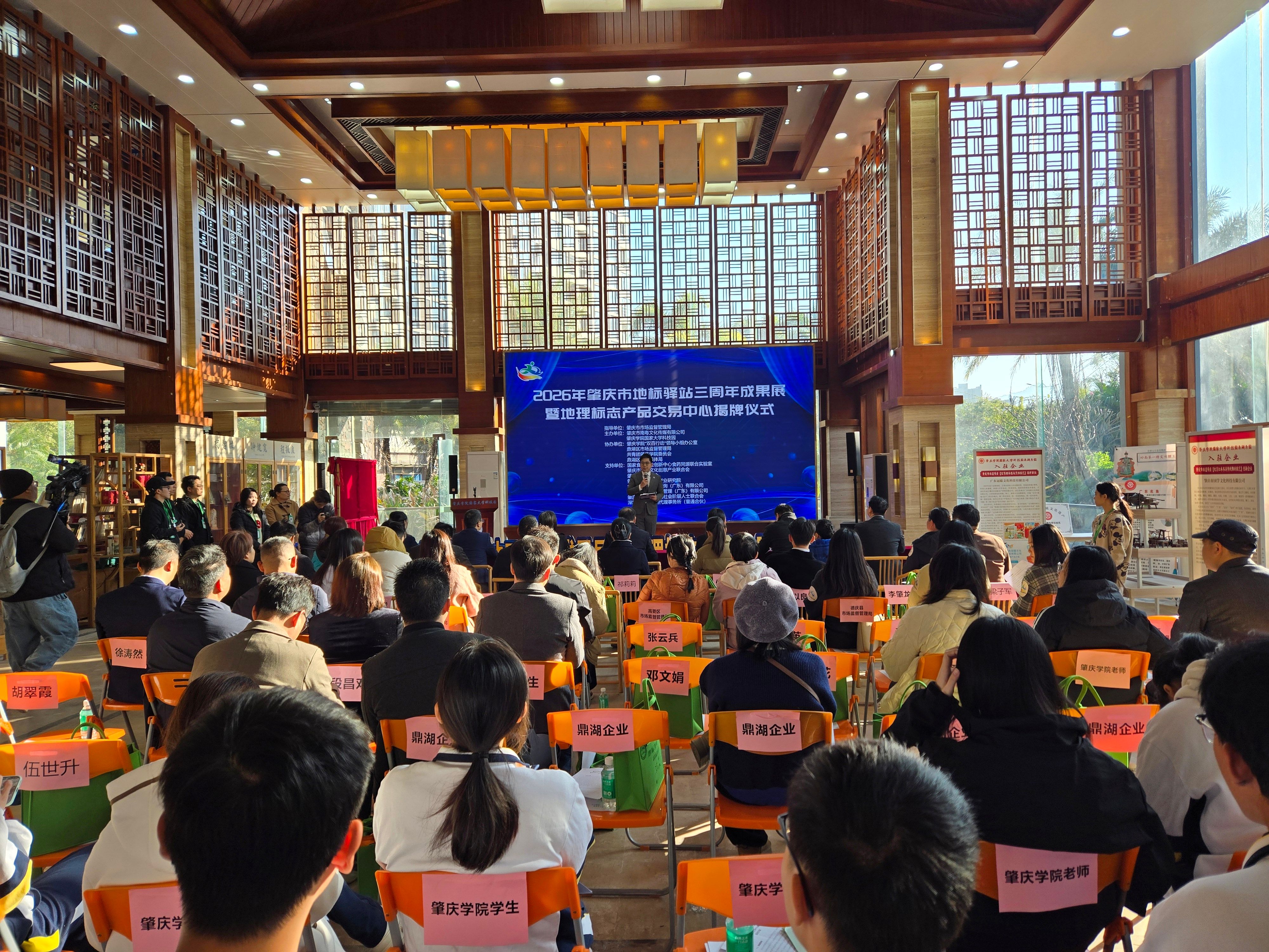 本网讯 1月8日,“肇庆市地标驿站三周年成果展暨地理标志产品交易中心揭牌仪式”在科技园鼎湖分园圆满举行。本次活动由肇庆市市场监督管理局指导,我校科技园、团委、"双百行动"领导小组办公室以及鼎湖区市场监督管理局、文广旅体局等单位共同举办。肇庆市市场监督管理局及各县(市、区)局相关负责人,我校科技园管委办主任肖俊霞、团委副书记叶岳,市网商协会、地理标志产品企业代表及我校师生共80余人参加活动。