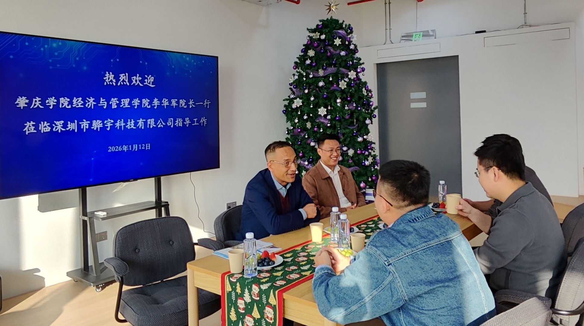 本网讯 1月12日,经济与管理学院启动“暖心拓岗”访企系列活动,首站由李华军院长带队,走进校友企业——深圳市骅宇科技有限公司,助力2026届毕业生高质量就业。