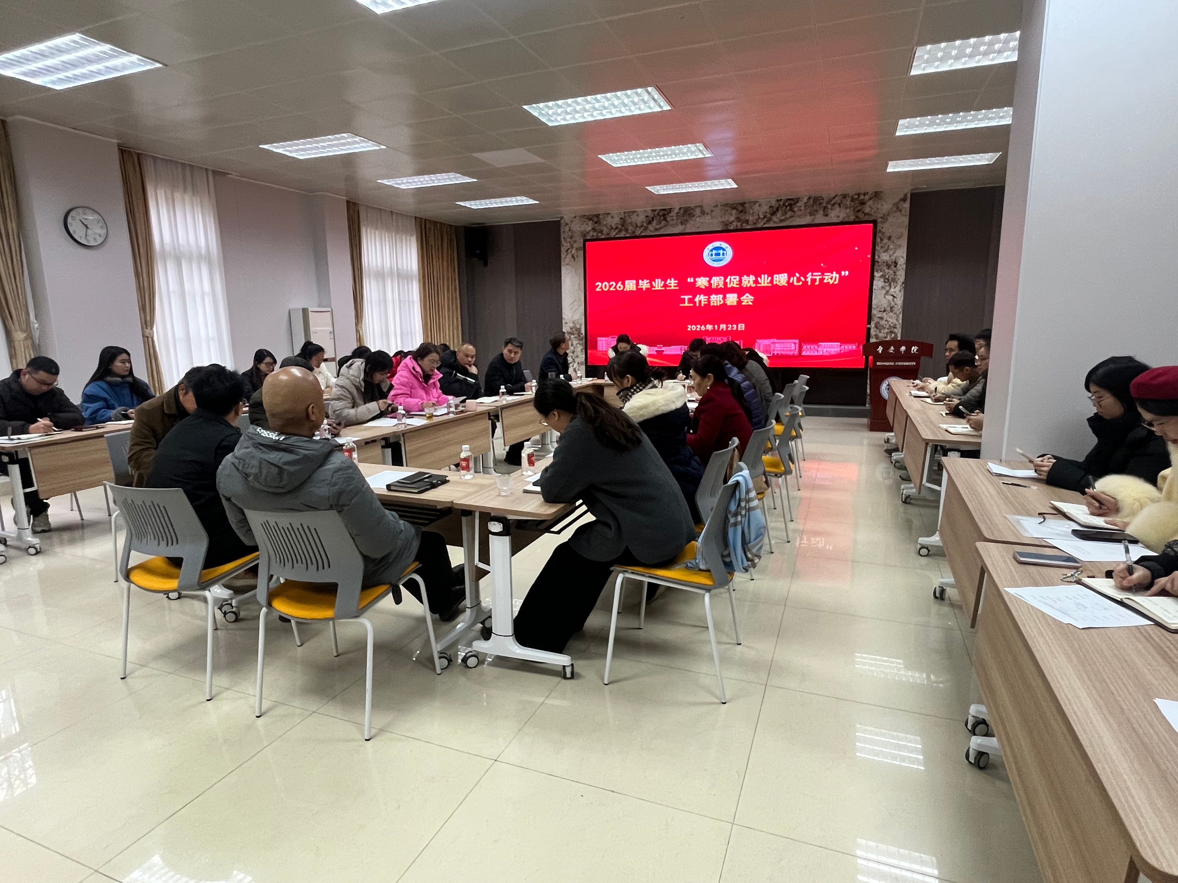 本网讯 为深入贯彻党中央、国务院关于高校毕业生就业工作决策部署,落实2026届全国高校毕业生就业创业工作会议精神,扎实推进 2026 届毕业生就业工作,1 月 23 日,我校召开2026届毕业生“寒假促就业暖心行动”工作会议。学生工作部(招生与就业指导中心)陈玉华部长出席会议,各二级学院党委副书记及负责 2026 届毕业生就业工作的辅导员参加会议。