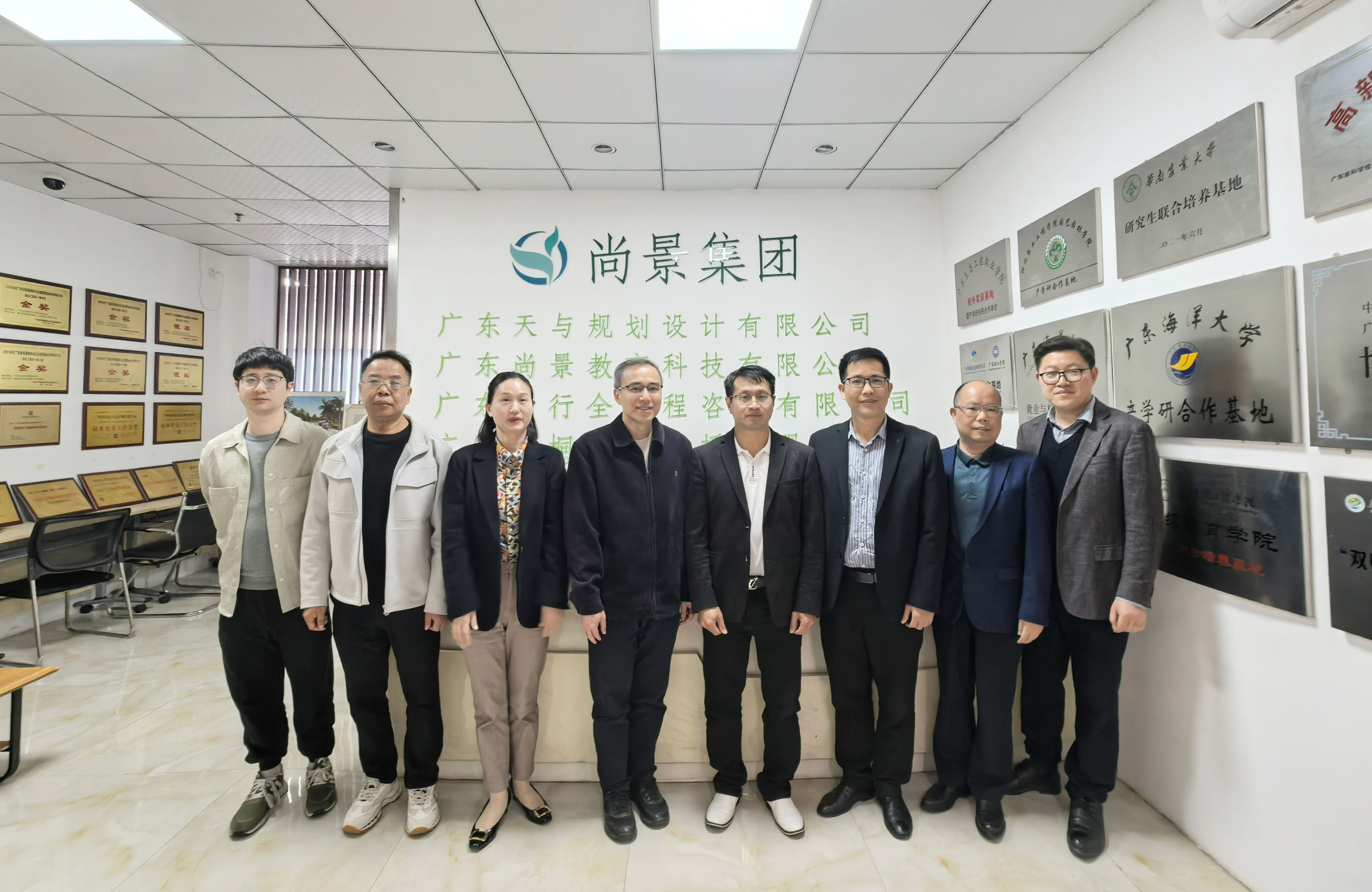 1月29日,黄剑青率队赴广州市尚景生态景观有限公司调研并举行产学研合作签约仪式。公司董事长方中健详细介绍了公司作为国家高新技术企业的发展情况。黄剑青介绍了学院应用型办学导向,副院长陈华具体阐述了专业建设规划。双方就实习基地共建、项目合作、课程开发等进行了探讨,并正式签署了产学研合作协议,标志着合作进入新阶段。