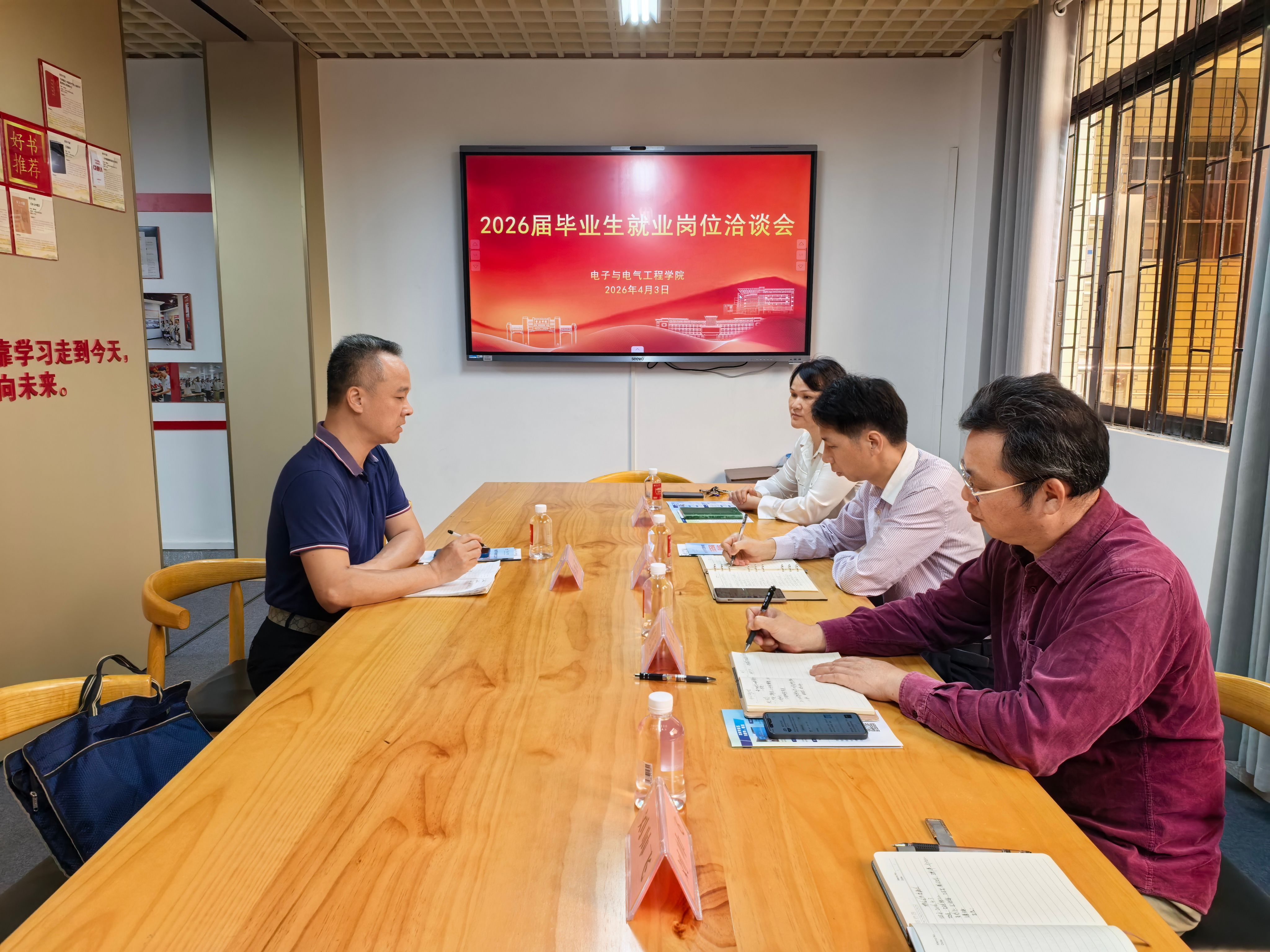 本网讯 为扎实推进2026届毕业生就业工作,精准对接企业用人需求,4月3日上午,电子与电气工程学院在实验楼322室召开2026届毕业生就业岗位洽谈会。珠海京东方晶芯科技有限公司人事部经理区恒辉应邀参会,学院党委书记王浩发、副书记傅汉球等相关负责人及辅导员参加会议。