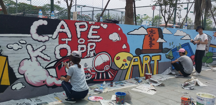我市全民创文期间,我们可以看到来自各个岗位的群众活跃在各个领域,尽己身一份微薄之力为创文工作增添一份光彩。我校也号召全校师生积极投身创文,为创文贡献出高校的力量。在我校创文行列中,有这样一群人,以画笔作为“创文冲锋枪”,公共场所中的一面面墙壁,则是他们“作战”的战场。我校美术学院副教授、被评为市创文先进个人的胡荣奎老师便是这支队伍的“将军”,他带领美术学院广大学子,在创文期间为我市的代表性公共墙壁添上艺术的外衣,增添文化的内涵。