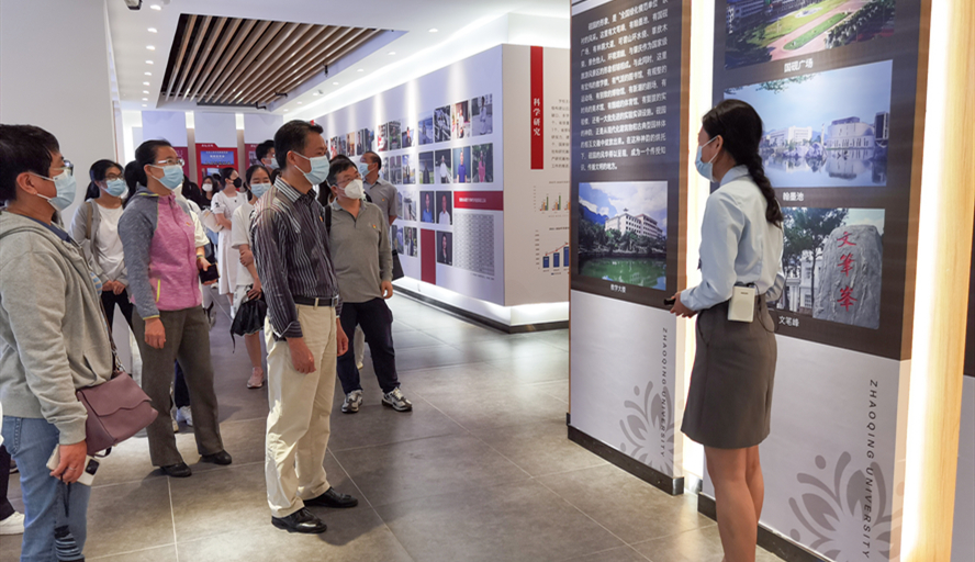 大家在讲解员的引导下,系统了解肇庆学院五十多年的发展历史,感受学校深厚的文化底蕴和光明的发展前景,体会学校的醇厚学风与拼搏氛围,更好地理解“厚德、明智、博学、力行”校训的深刻内涵。
