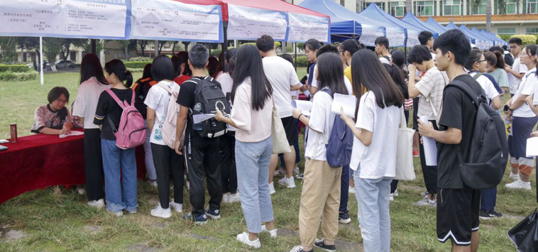 应聘学子根据招聘要求,结合专业或自身特长选择符合自己的岗位进行应聘。大家有序排队,在摊位前咨询相关问题,招聘人员详细解答。
