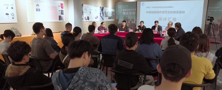 专家评委首先到申报基地实验室进行实地考察,与砚雕课程师生进行深度交流。随后参观了中国端砚制作技艺人才培养成果展。在复评会议上,专家评委对我校的组织申报工作给予了高度评价,一致认为,端砚制作技艺文化是中华优秀传统文化,应得以继承和传扬,肇庆学院作为地方院校,将传承中华优秀传统文化为己任,积极探索和弘扬优秀传统文化,在文化传承方面做了非常扎实的前期工作,取得了一系列的优秀成果,充分体现了高校以文化人、以美育人的教育方针和文化传承担当。为进一步健全和完善端砚制作技艺文化传承基地,专家们提出了一系列具有针对性的改进建议。