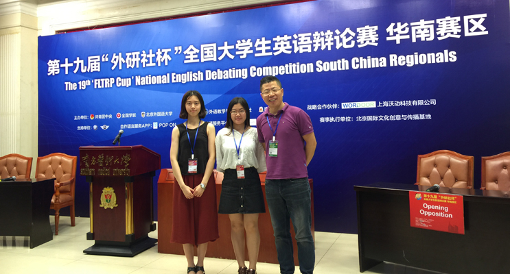 本网讯(外语学院 通讯)5月6日至8日,第十九届“外研社”杯全国大学生英语辩论赛华南赛区复赛在广州举行,我校选手、外语学院13翻译班胡钰敏同学和13英本5班的林清敏同学取得三等奖的好成绩。