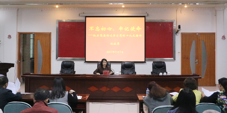 本网讯 11月7日,机关党委召开以“不忘初心、牢记使命”为主题的党的十九大精神学习贯彻会议。校党委委员、机关党委书记沈钦萍主讲,机关党委委员、机关各支部书记和临时负责人共同参加学习。