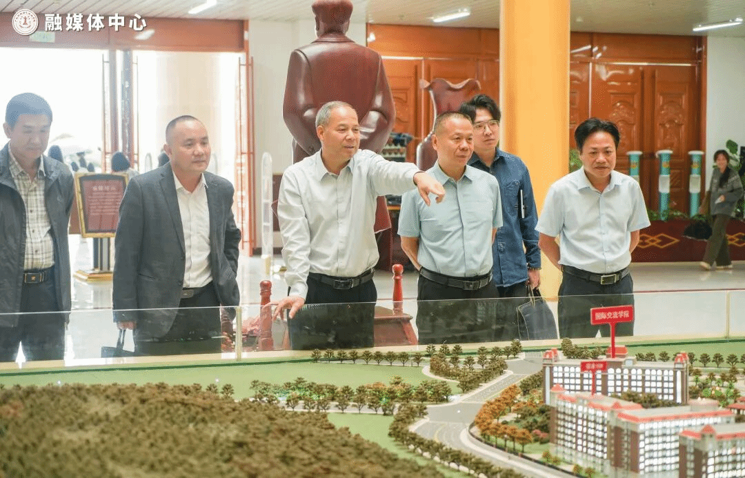 本网讯 10月30日,文学与传媒学院党委书记陈伟林、政法学院党委书记张滔华率队赴广东亚视演艺职业学院考察交流。广演党委书记谭冠中带领参观校园设施并主持座谈。