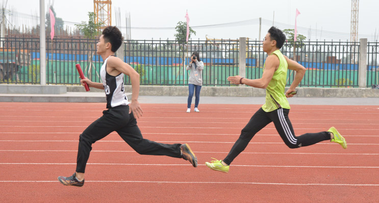 瞧,邻家的两个兄弟又在互相“追逐”了。看他们你不让我,我不让你,看他们汗水沾湿了紧握的棒子。前面的头也不回一直往前冲,后面的穷追不舍,眼看就要追上了……其实,这两个主角是接力赛的运动员。健硕的步伐似乎脱离了万有引力的控制,他们背后似乎长出隐形的翅膀,驱着他们向前向前。看似奔跑如风,身轻如燕,实际上,他们的汗水早已浸湿了运动裤。