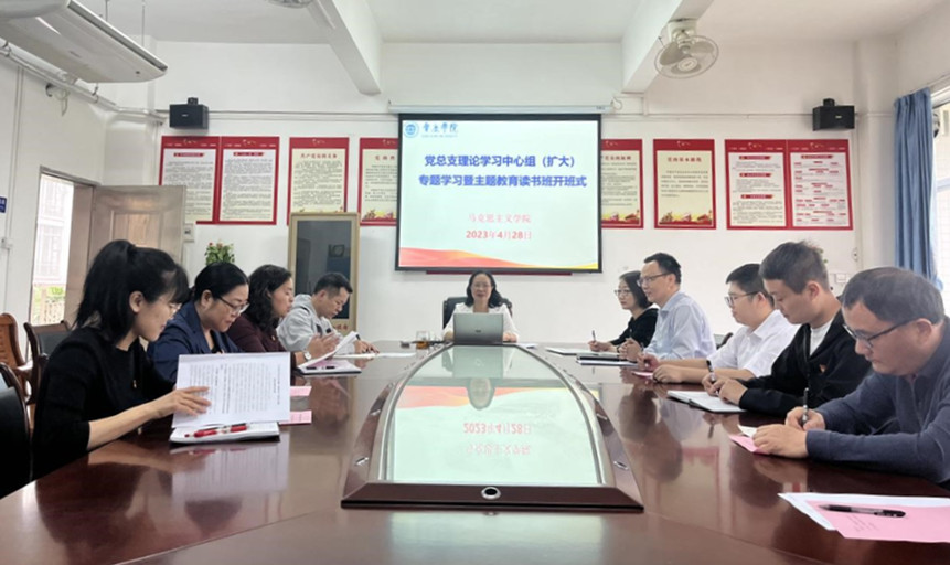 本网讯 4月28日,马克思主义学院召开党总支理论学习中心组(扩大)专题学习暨主题教育读书班开班式。会议由学院党总支书记、院长曹顺霞主持,学院支部书记和教研室主任出席会议并作交流发言。