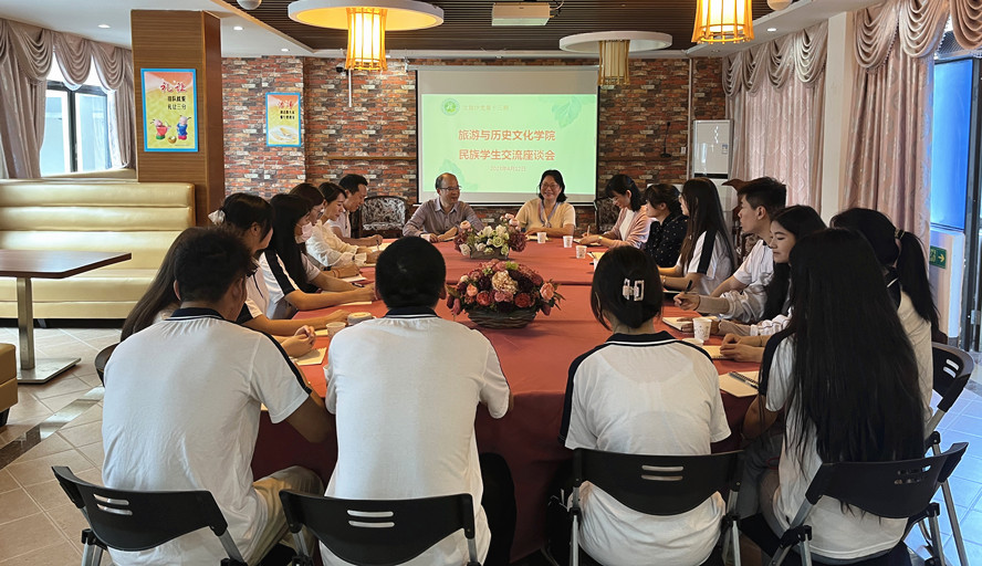 本网讯 为加强与少数民族学生的沟通交流,4月12日,旅游学院举行第13期“文旅沙龙”民族学生交流座谈会。院长李朝军、党委书记杨雪梅,专职组织员陈建群、辅导员慕容诗韵以及民族学生代表参加。