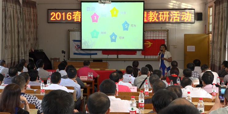 讲座中,驻地教师分享了自己的研究成果,从山区教师课堂教学现状、专业生活心理状态等视角分析了山区学校课堂面临的挑战,并分析了山区学校实现高效课堂的改进方向。