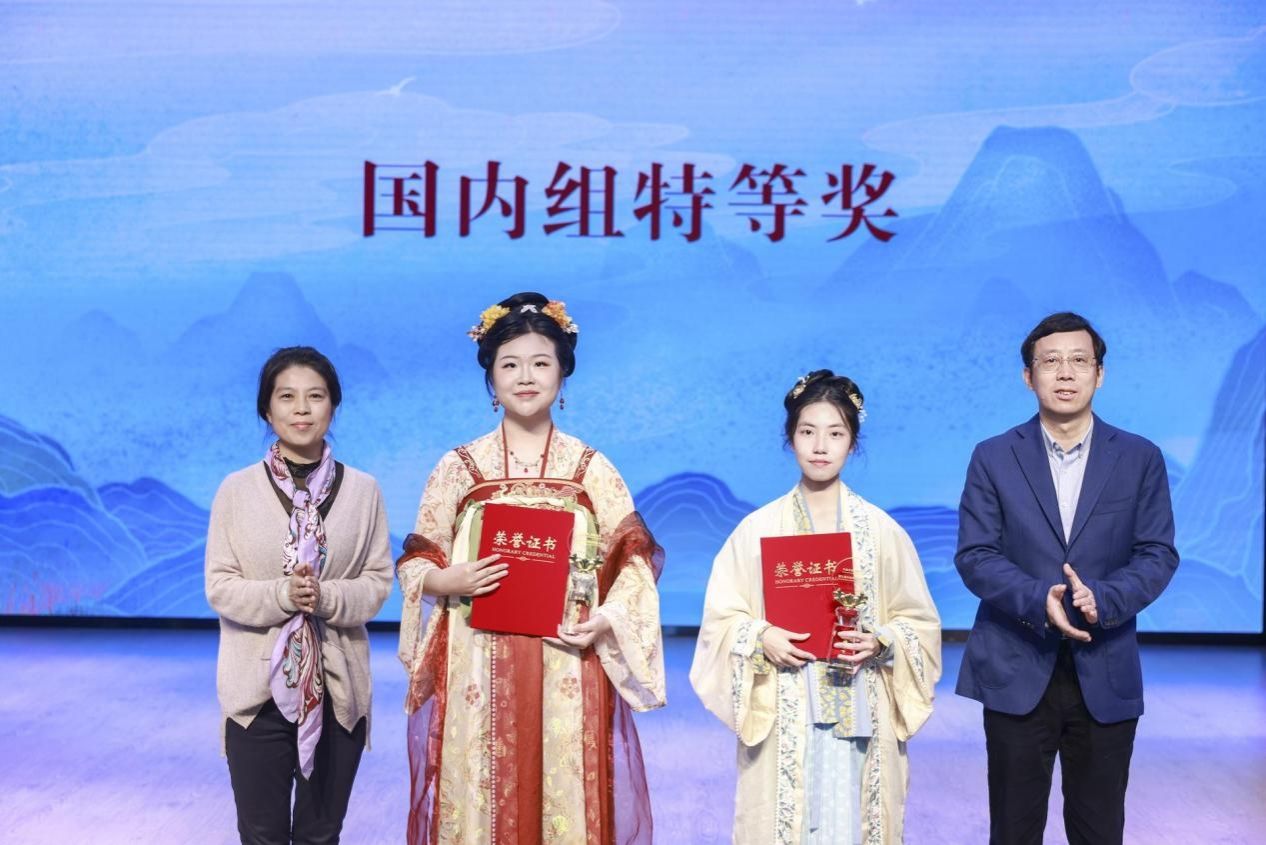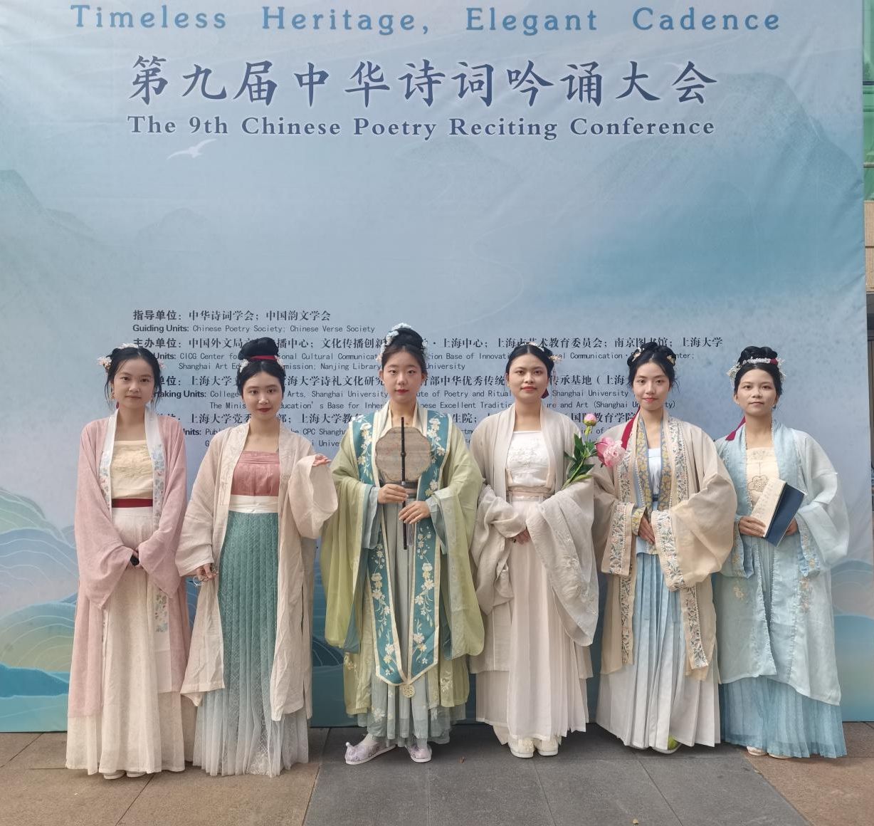 本网讯 11月15日,由中国外文局文化传播中心、文化传播创新合作基地·上海中心、上海市艺术教育委员会、南京图书馆和上海大学联合主办,主题为“千年文脉 雅韵长吟”的第九届中华诗词吟诵大会在南京图书馆举办。来自国内外多所高校的21支参赛队伍在此前的分区赛中脱颖而出,汇聚南京角逐总决赛奖项。我校砚园吟诵队成员,来自文学与传媒学院汉语言文学专业2023级的张嘉仪、田敏、钟洁莹、李炜婷、陆韵仪,以及2025级的丘柯瑜共6位同学代表学校参赛,在总决赛中吟诵宋词经典《蝶恋花·庭院深深》,表现优异,以总分第二名的成绩荣获大赛特等奖。同时,肇庆学院获得“最佳组织奖”。