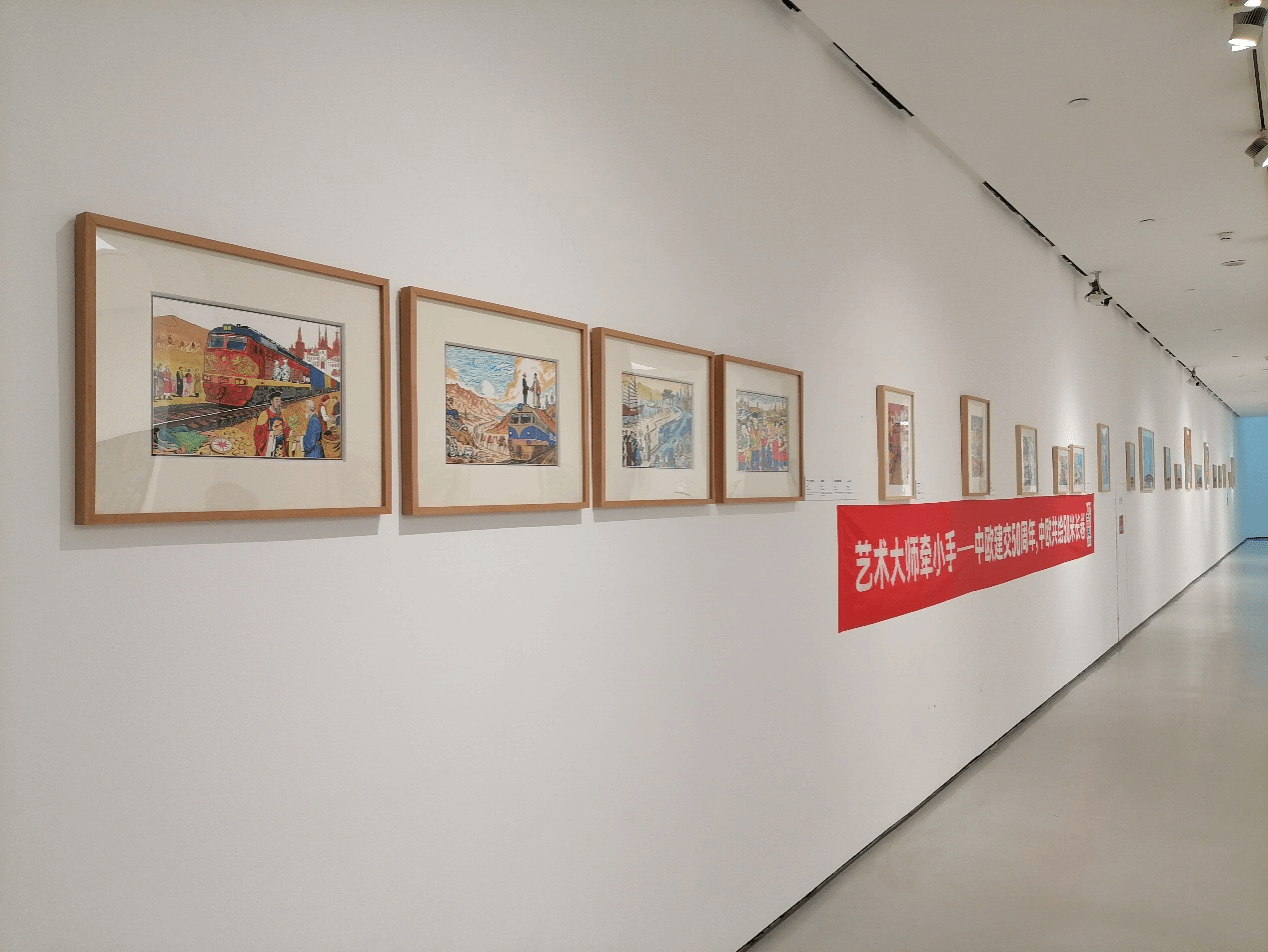 据悉,美术学院、设计学院承接此次主题展览的创作任务,学院教师指导统筹对接5所合作学校,围绕“利玛窦”、“中欧班列”、“丝绸之路”、“中外少年儿童”四大主题,为每所学校精准提供大量创作素材,引导师生将校园青春叙事与中欧班列的时代意象相融合,各校最终完成并提交了130幅主题鲜明、具有校本特色的完整画面创作。经评选,5所学校各有一幅作品成功入选线下展览,其余部分作品拟于2026年1月参与线上展览。