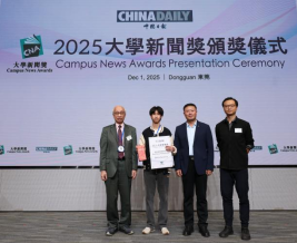 本网讯 2025年12月1日,由中国日报主办的2025大学新闻奖颁奖典礼在香港城市大学(东莞)举行。我校食品与制药工程学院2024级学子郑奕的新闻摄影作品《校园是成长与快乐的容器》,在上千件中英文参赛作品、3000余名参赛者及百余所知名高校的激烈角逐中脱颖而出,获得本届赛事“最佳新闻摄影图片”组亚军。