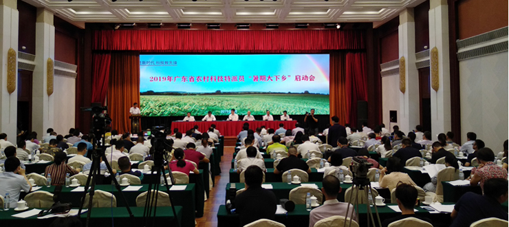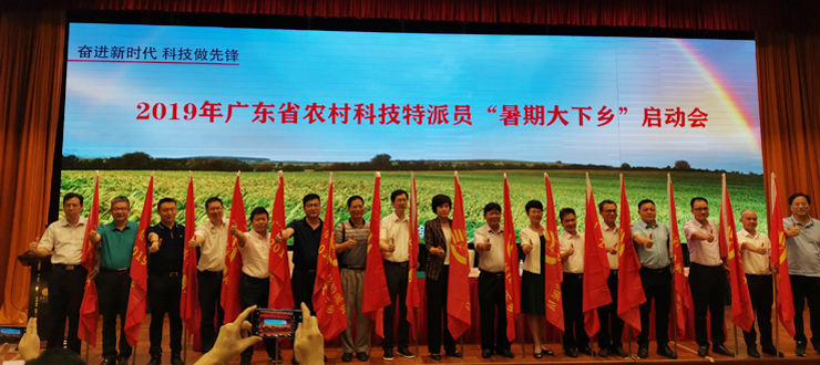 本网讯 7月10日,“奋进新时代•科技做先锋”2019年农村科技特派员“暑期大下乡”活动启动仪式在广州举行,副省长覃伟中出席。校长助理黄金、生科院院长李新昌等6人代表我校参加活动。
