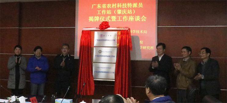 本网讯 2月26日,由我校牵头和联合肇庆市农校、肇庆市农科所共同组建的广东省农村科技特派员工作站(肇庆站)在我校揭牌。校长助理黄金,肇庆市科技局局长陈汉华,科技处、社科处、校地合作处处长胡海建,副处长周丽等领导出席揭牌仪式。